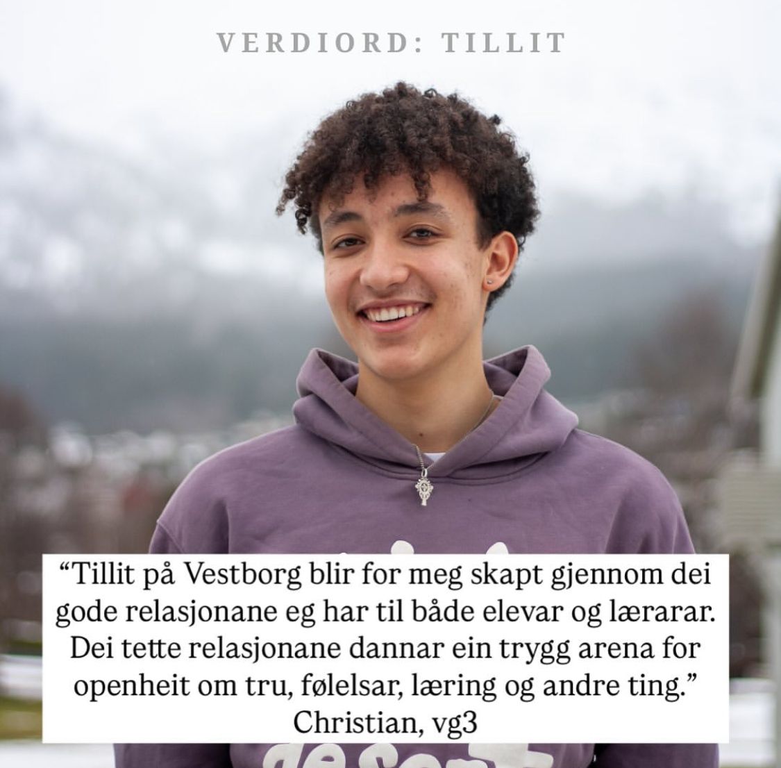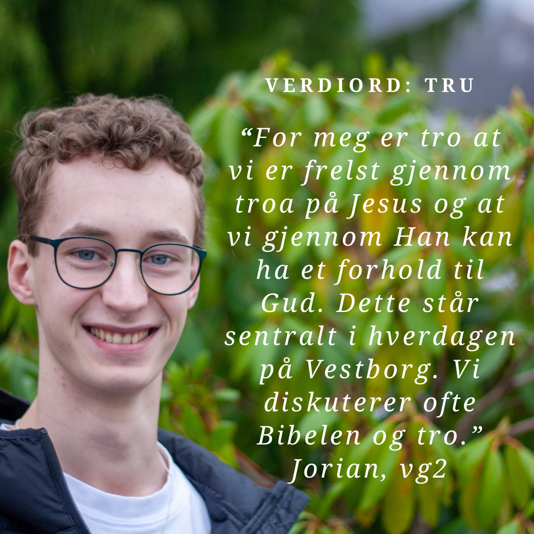 Vi har ein utvida kristen formålsparagraf og i skulekvardagen legg vi vekt på å framheve kristen tru og kristne verdiar. Det er likevel viktig å presisere at alle er like velkomne.