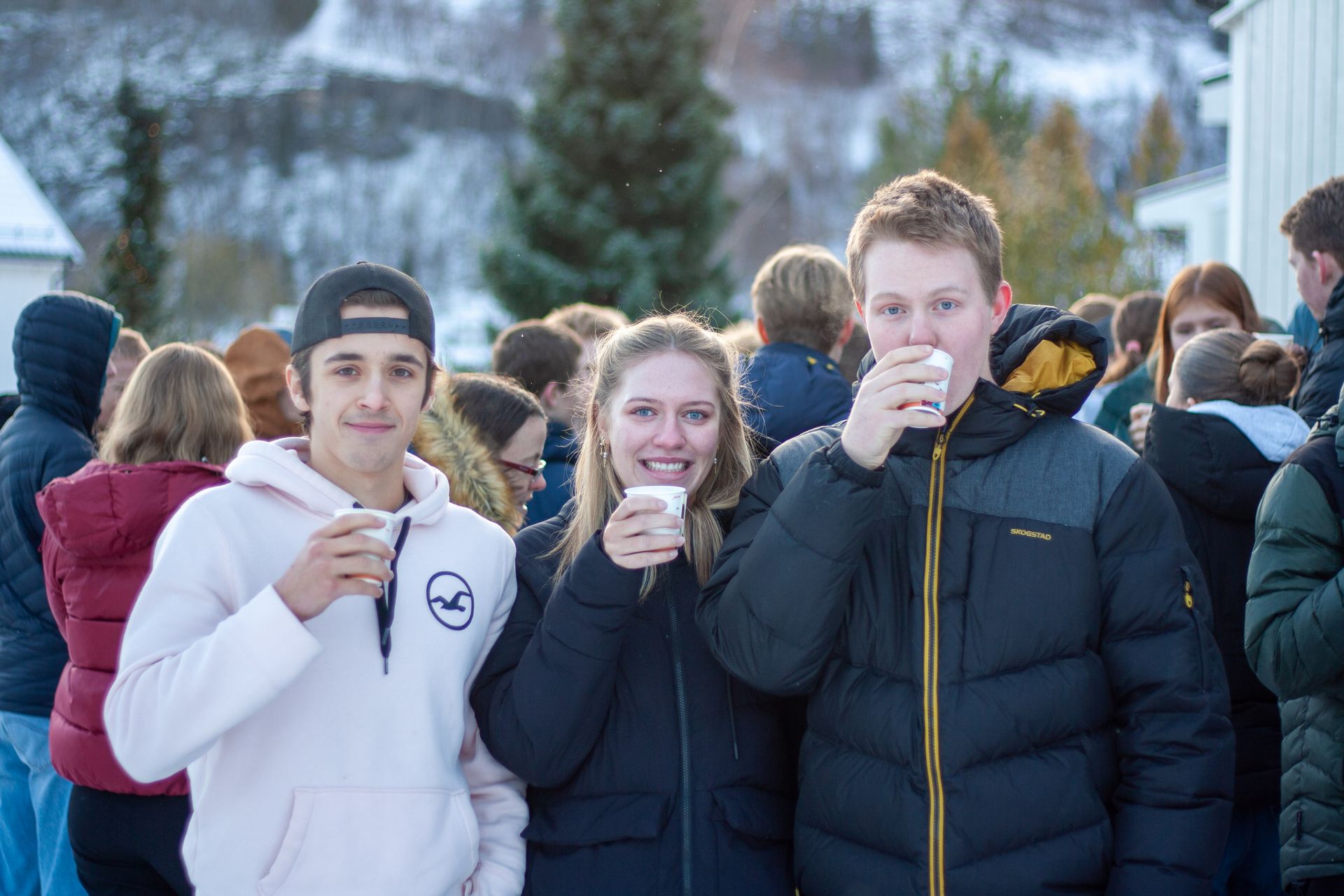 Tradisjon tru arrangerte miljøteamet juleverkstad kvelden før 1.desember. Då laga elevane julepynt og pynta matsalen og Slogen. Når november bikka over til desember var det juletregang og lystenning utanfor Slogen. Søndag morgon var det nok ein tradisjonell happening: Elevane vart vekt kl 07 og mange stod opp for å få med seg julefilm og julekos i russekiosken.