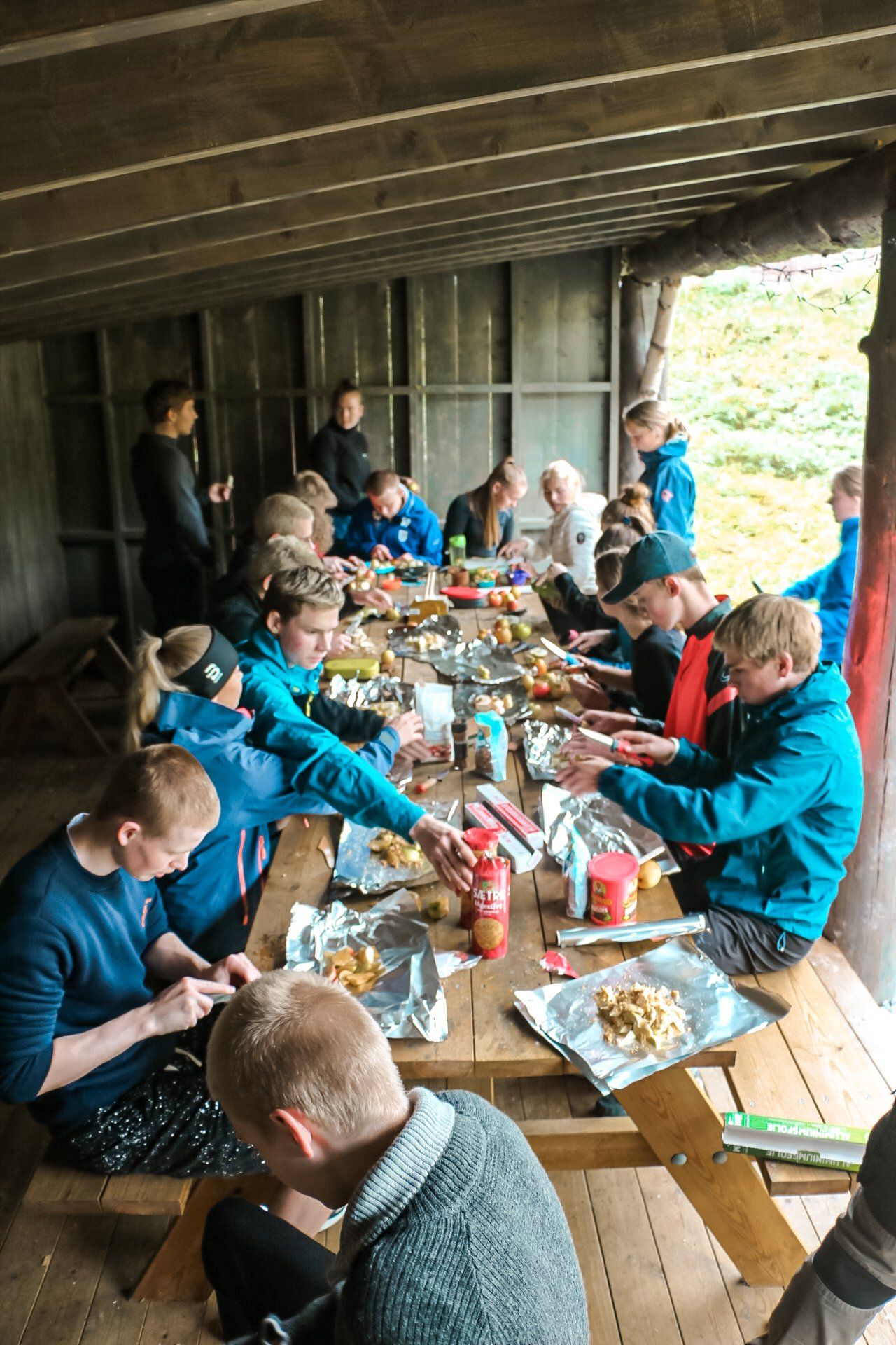 Vi har bygd ein gapahuk på området som blir brukt til både bålkos, overnatting og til undervisning.