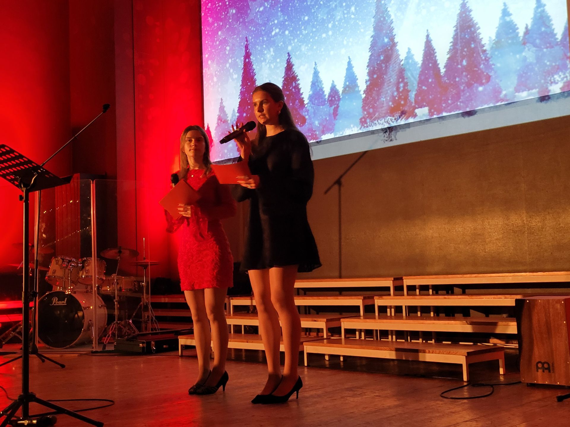 Vg2 hadde laga til eit veldig flott program – bunde saman av dei to dyktige programleiarane Bertine Aas og Linde Ulstein. Låtten slo i taket gong etter gong i løpet av festen, og stemninga var god.