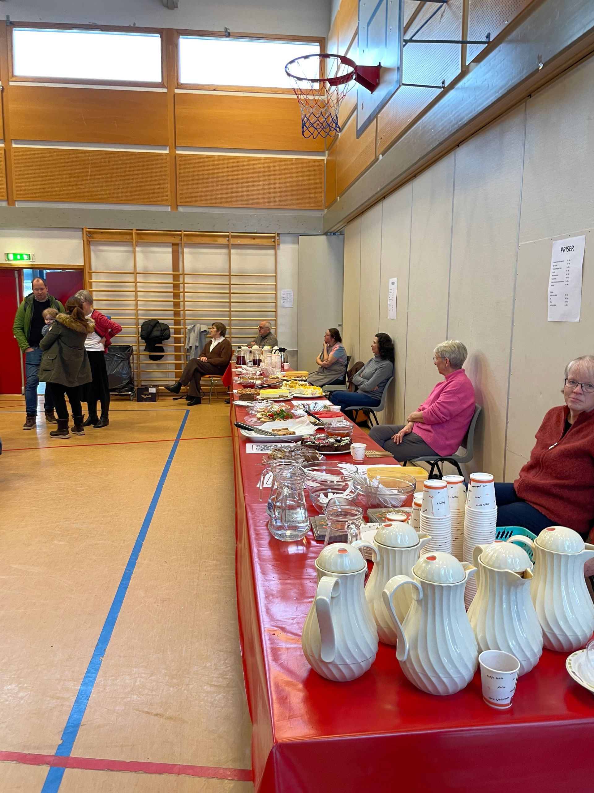 Det var heller ingen grunn til å gå svoltne gjennom dagen, for kafèen bugna av kaker, påsmurte rundstykker, vårrullar og anna godt. Det var også sal av rømmegraut midt på dagen.