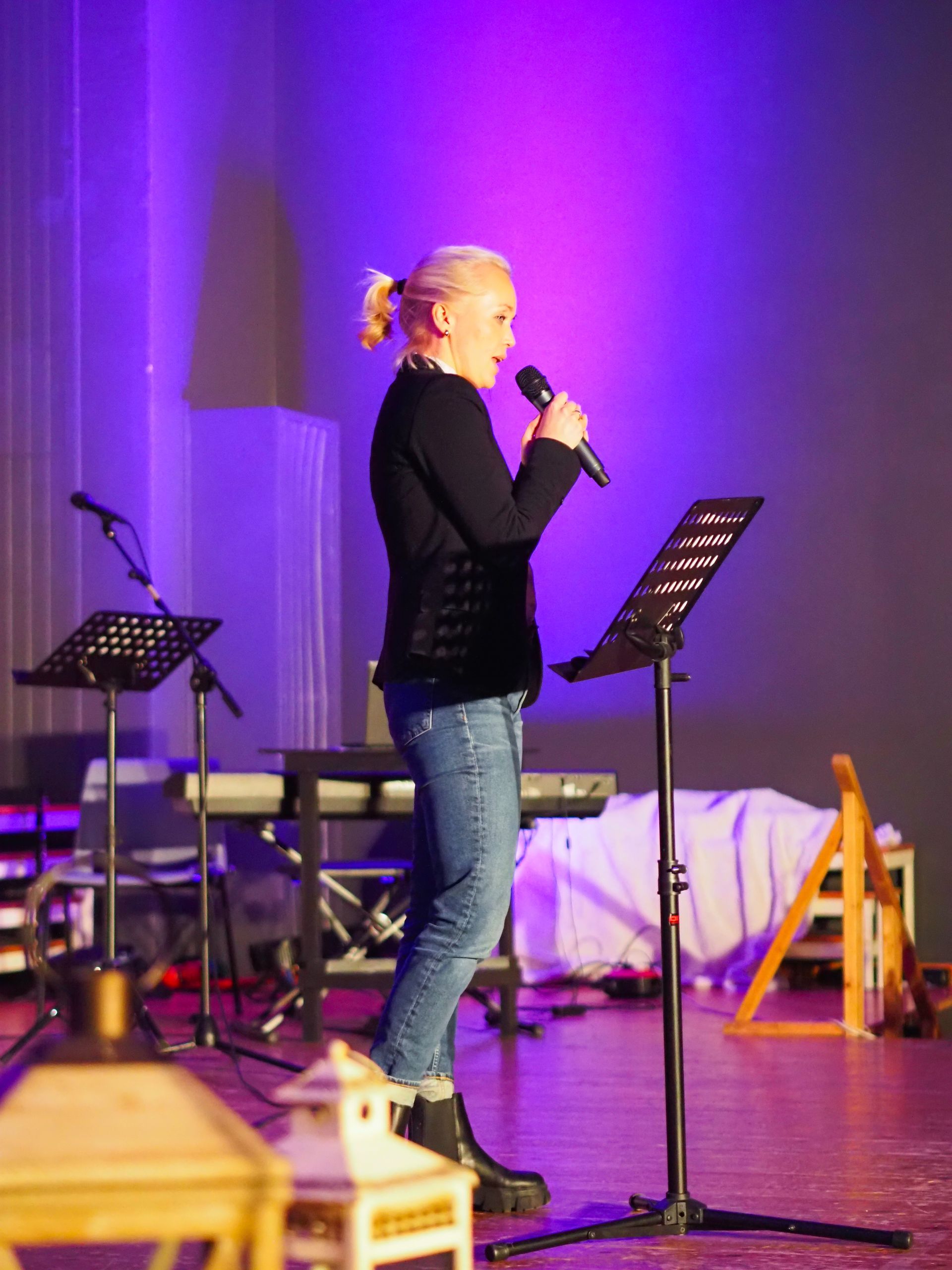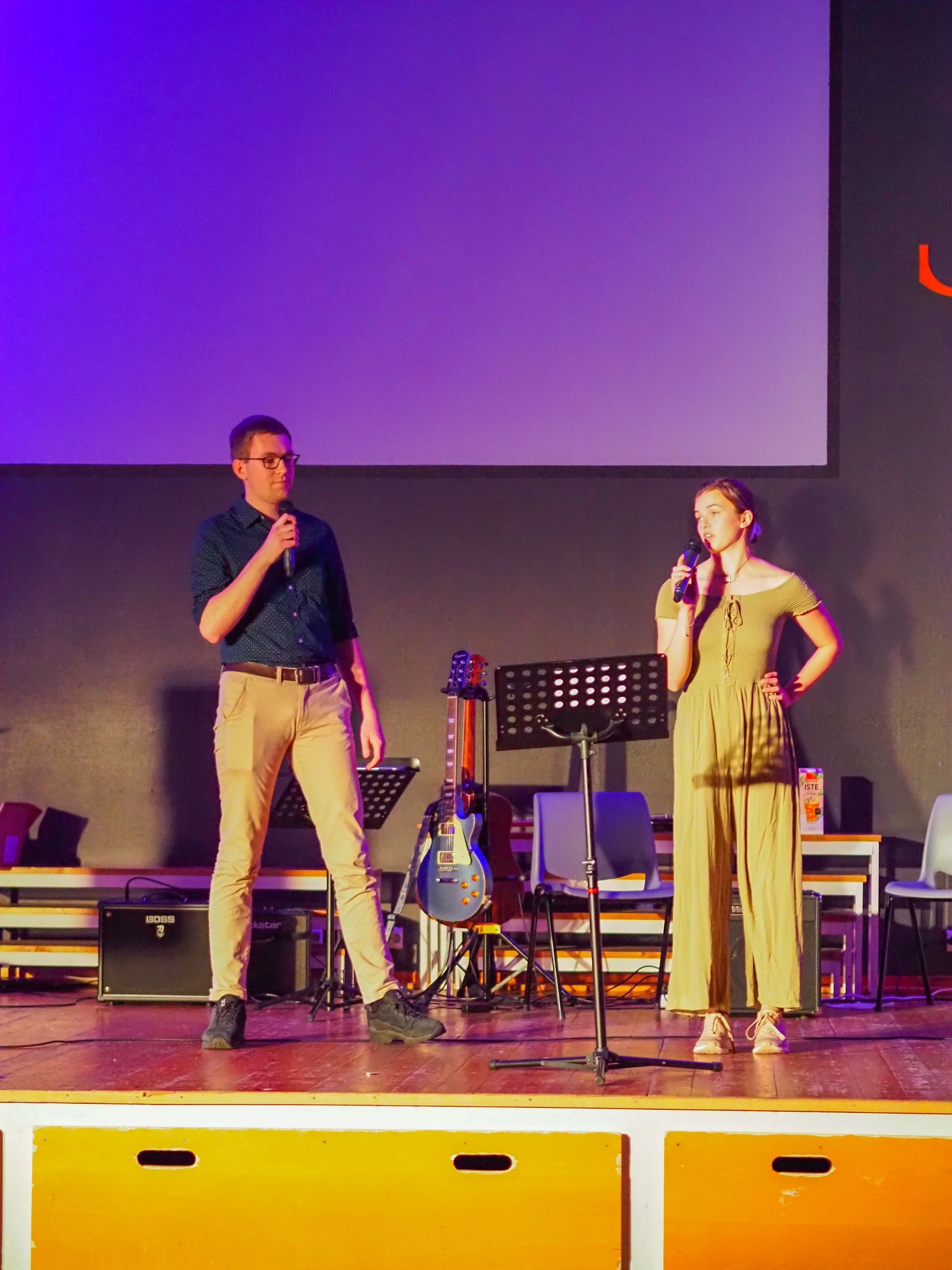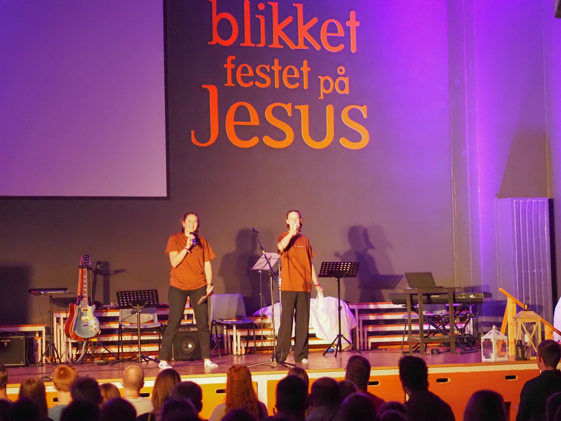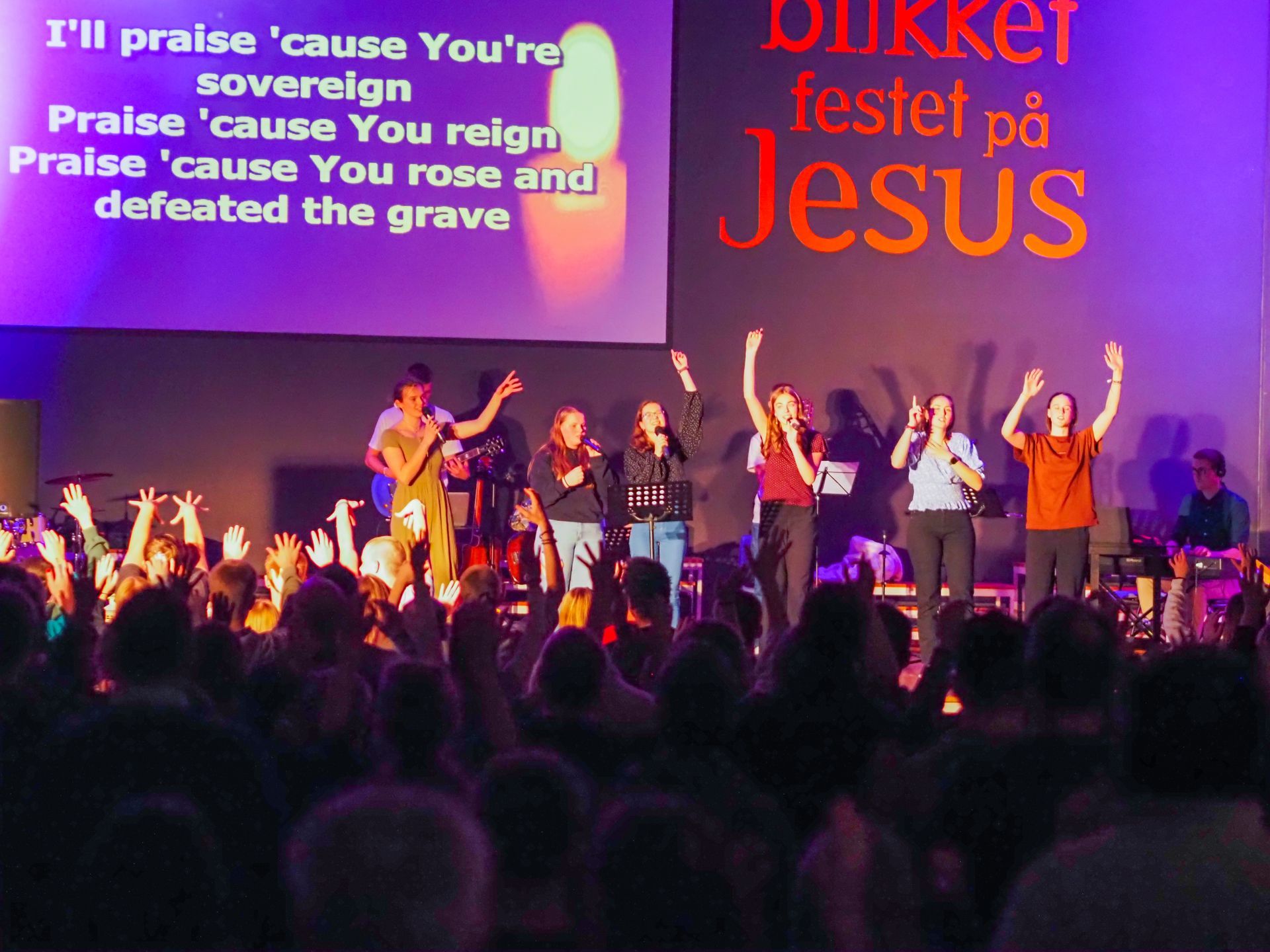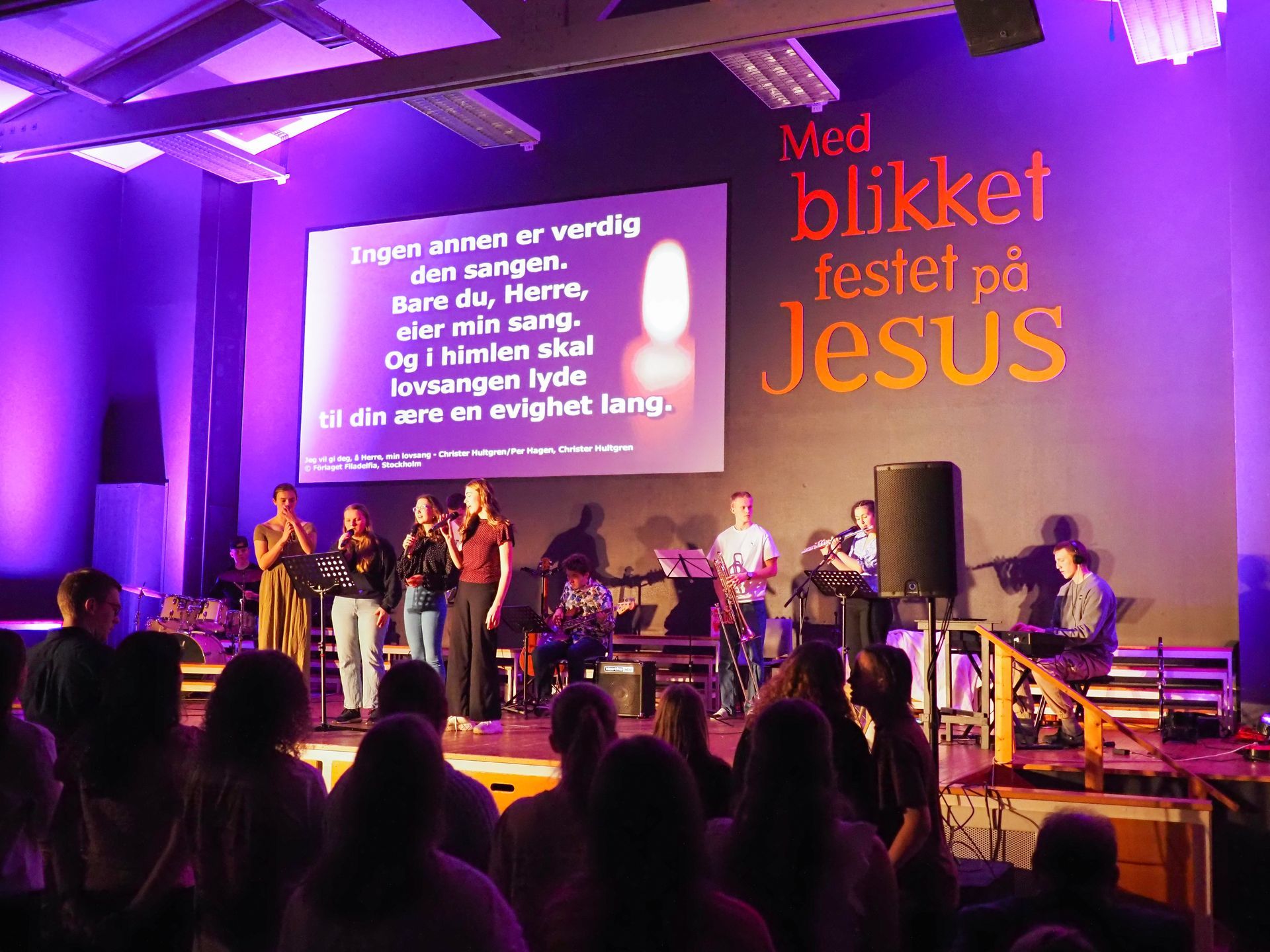 Lovsangsteamet med fullt band, som består av elevar, leia dei frammøtte i lovsang av høg kvalitet, og skapa skikkelig festivalstemning.