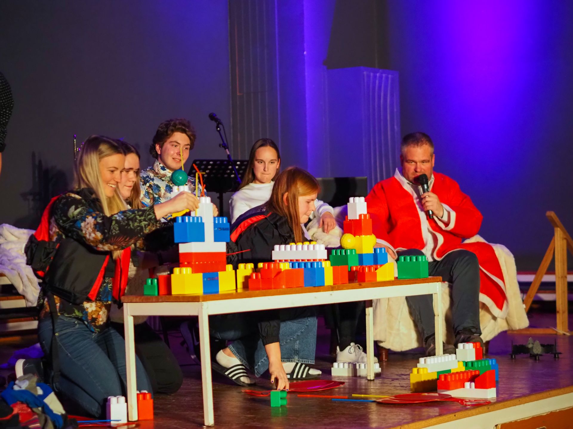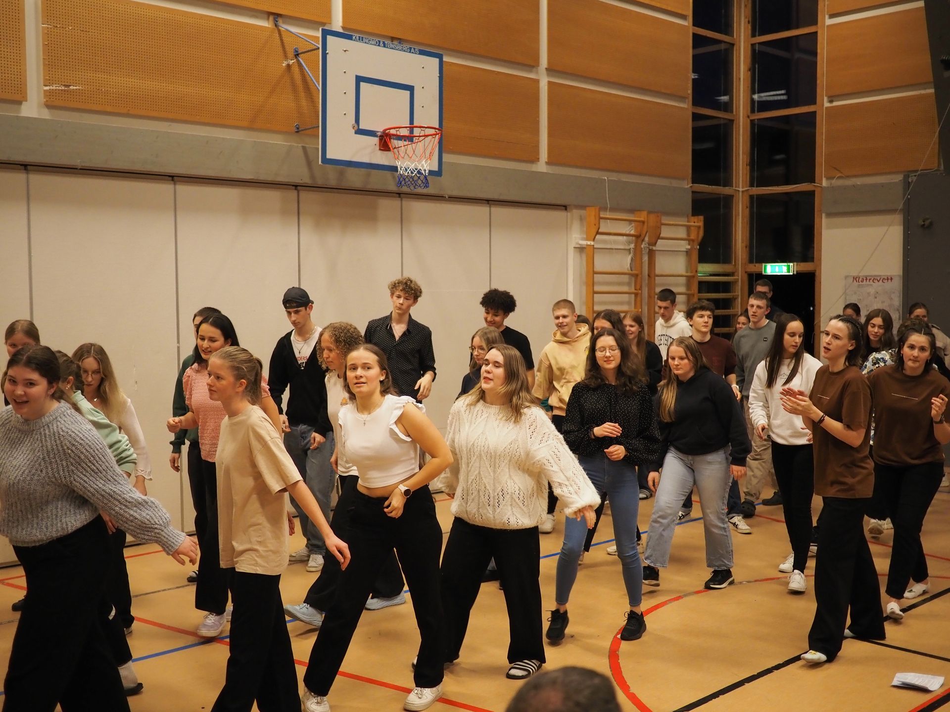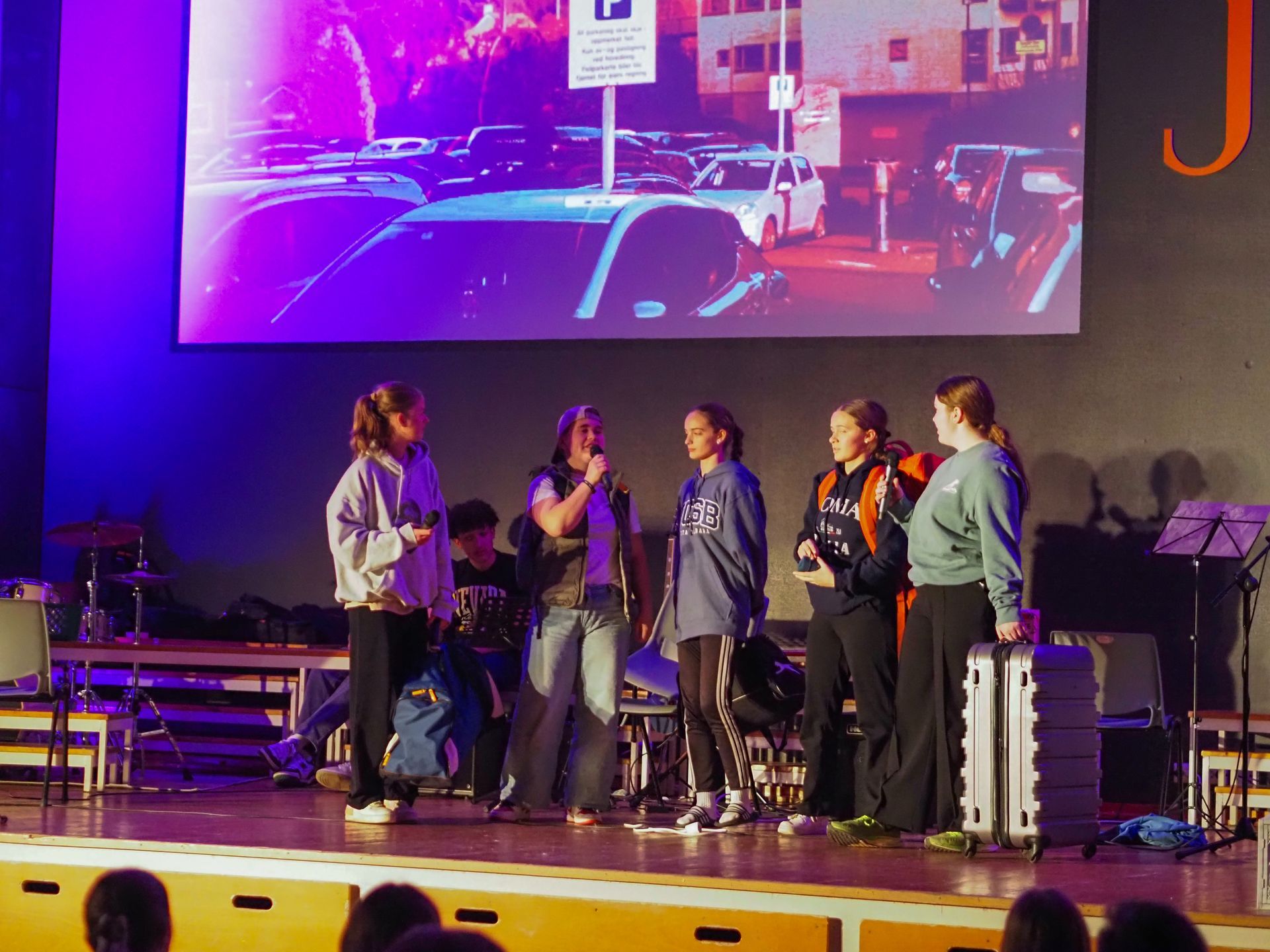 Etterpå hadde elevar frå vg2 lage ein morosam sketsj som kvardagen til nokre elevar på skulen.