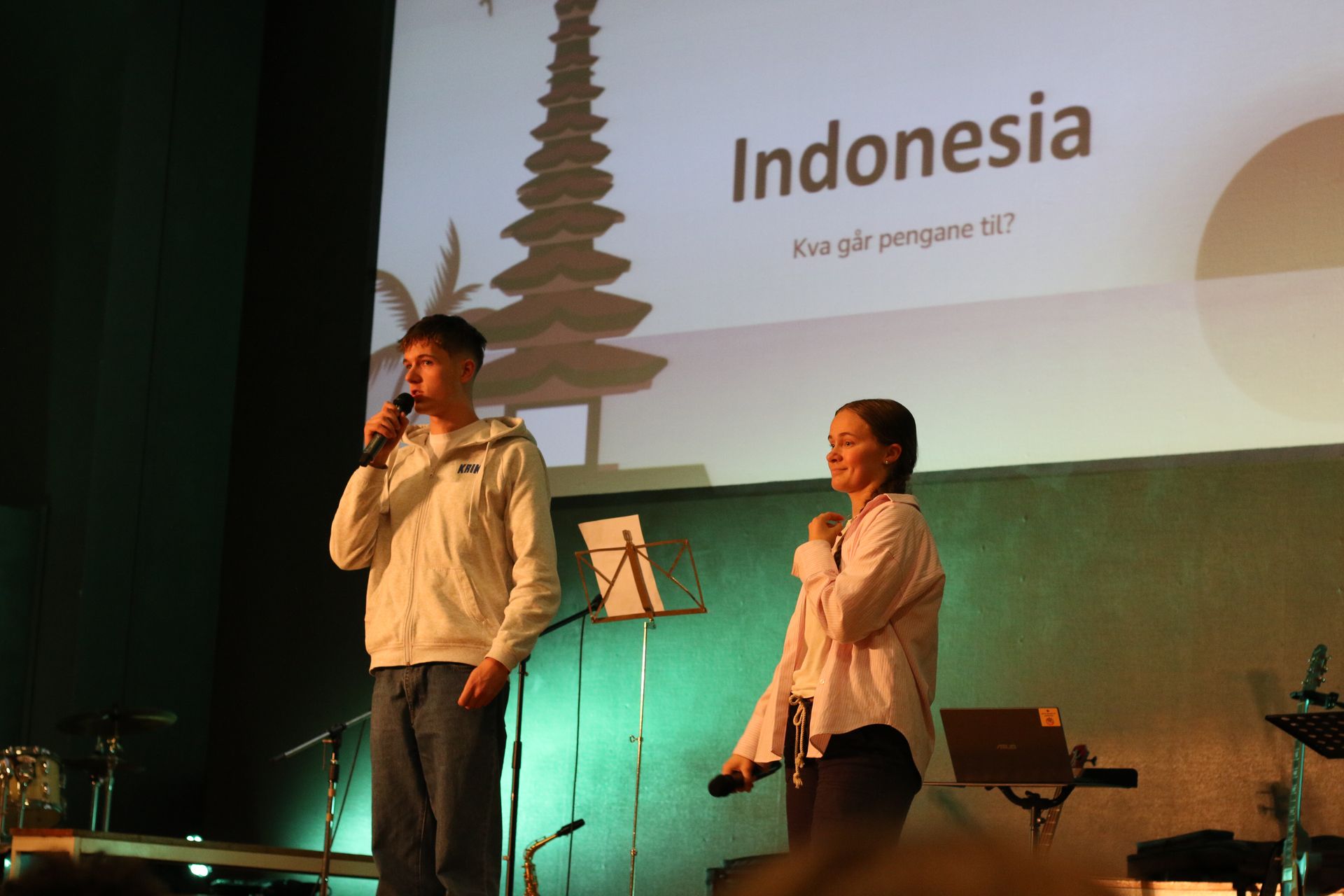 Hanna Aasbø og Andreas Frantzen Lothe er årets misjonsprosjektleiarar. Dei reiser for å besøke årets misjonsland, Indonesia, 10 november. I den anledninga fortalte dei om prosjekta som klassa samlar inn pengar til.