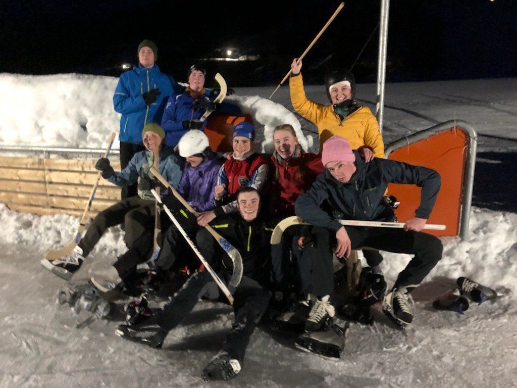 Ein ettermiddag denne veka var ein gjeng glade VG2-elevar i isbingen og leika seg – med og utan skeiser oppunder beina.