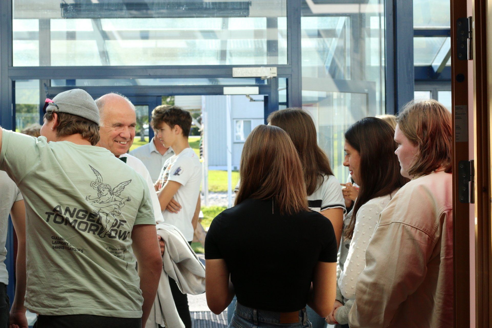 kl 2100: Nye elevar og fadrar møter i gymsalen til aktivitetar.