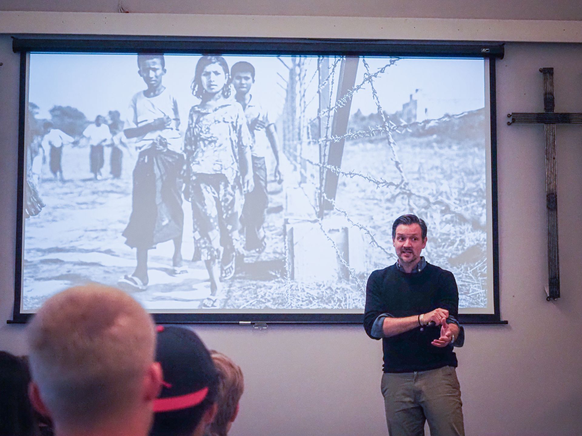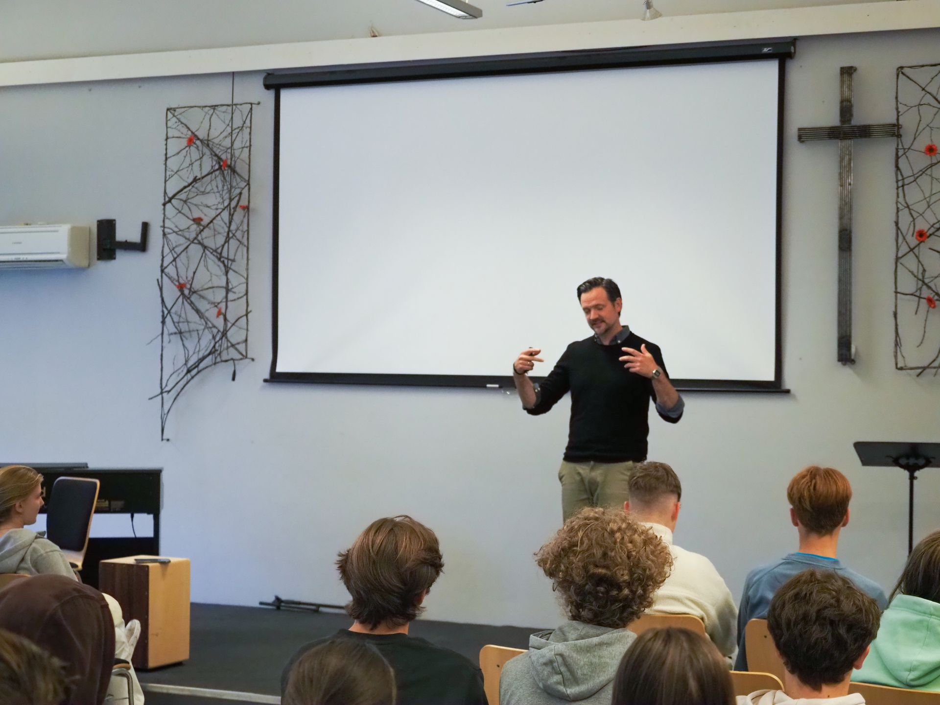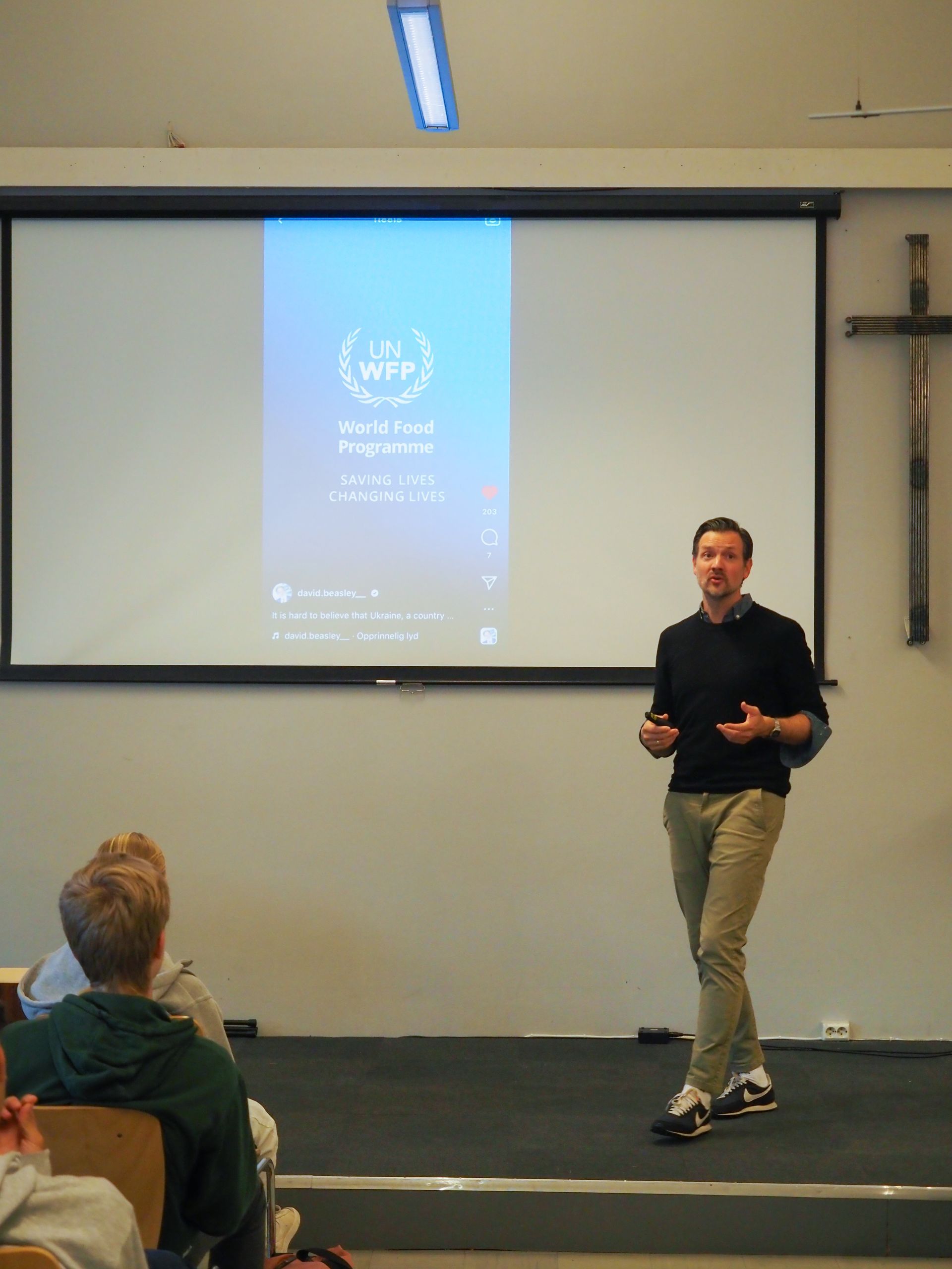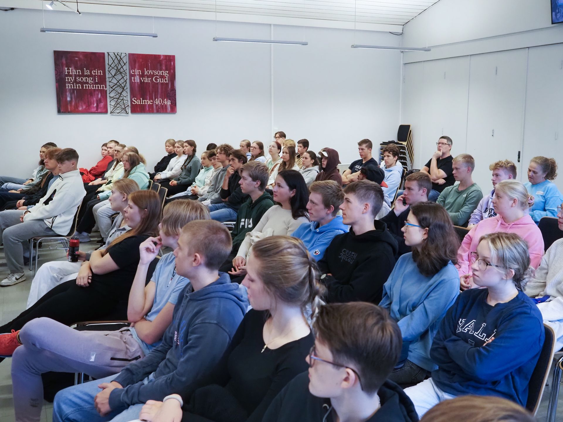 Etterpå heldt han eit foredrag om bistand, menneskerettigheitar og arbeid med klima og berekraft. Her fortalte han om sitt arbeid og sine erfaringar som Bistands- og utviklingsminister under førre regjering. Med interessante og sterke historier saman med bilete frå eigne reiser gjorde dette inntrykk på elevane våre.