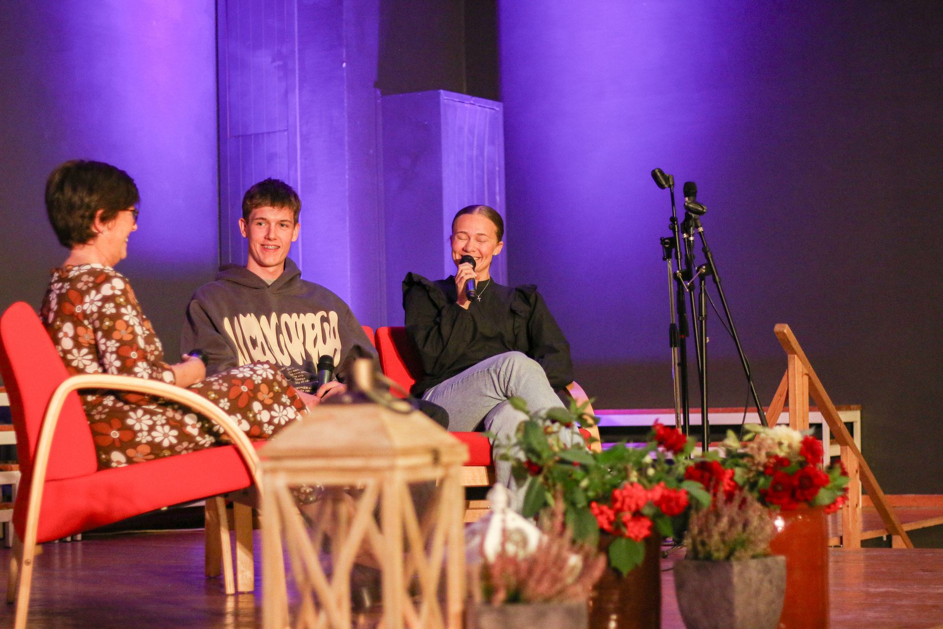 Bodil Breivik Bø hadde sofaprat med to av dei noverande elevane som fortalte om korleis det er å vere Vestborg-elev i 2024. Dei er også prosjektansvarlege for årets misjonsprosjekt til Indonesia og fortalte litt om arbeidet og planane dei har for årets prosjekt.