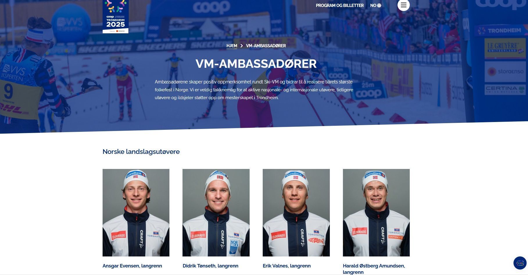 Lenke til heimesida: VM-ambassadører - Ski-VM Trondheim 2025